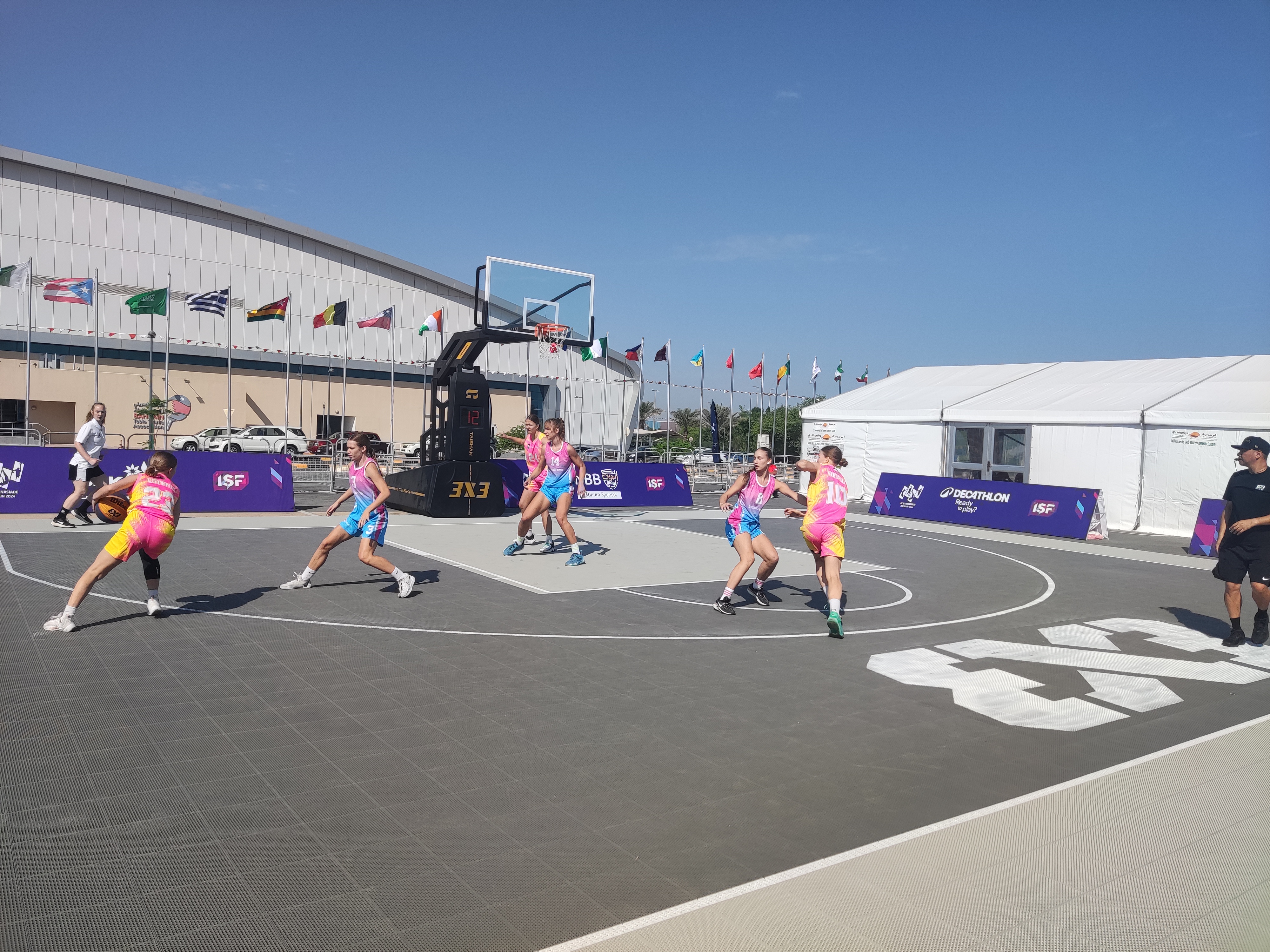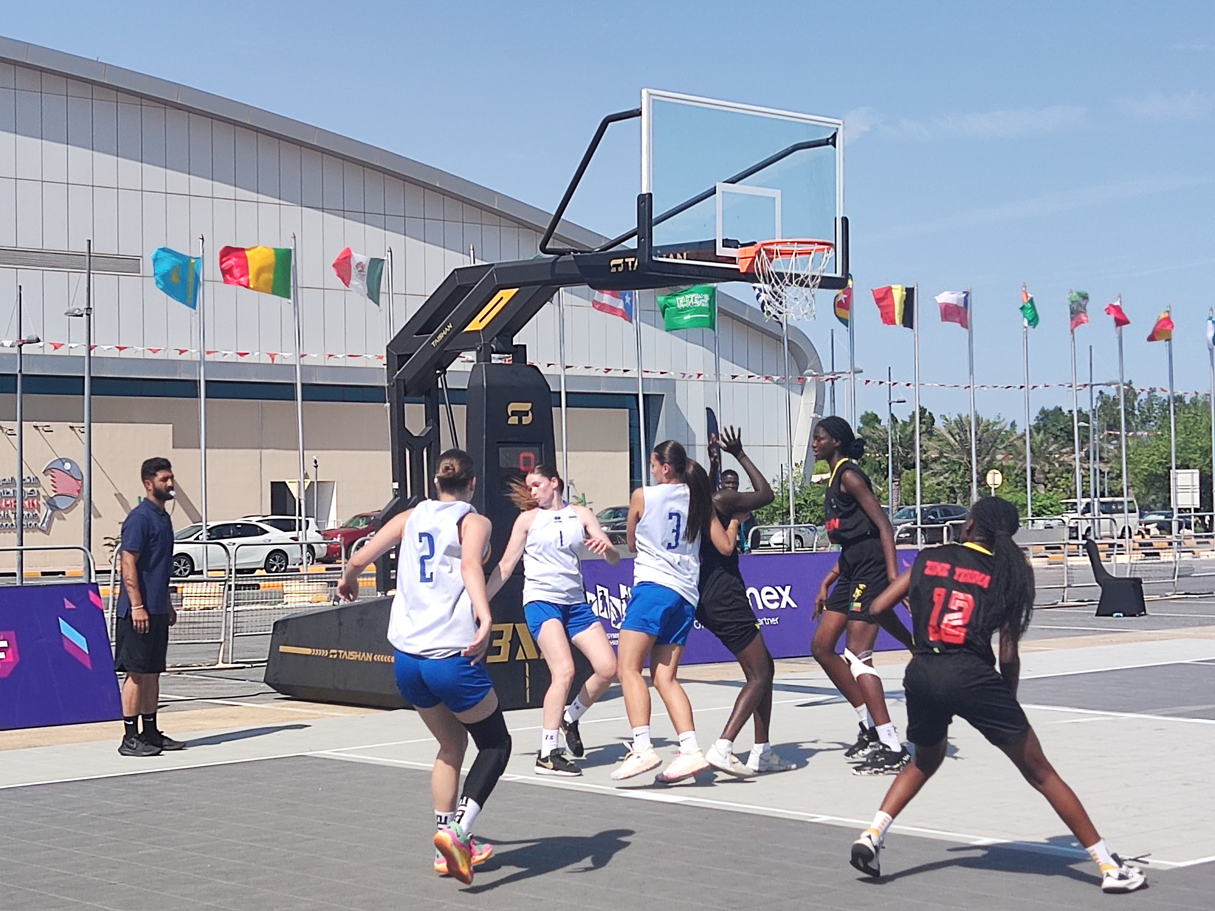 当地时间10月26日,巴林世界中学生运动会上的篮球赛事进行的如火如荼。值得关注的是,赛事是在中国·3003新葡的京体育提供的3x3智能篮球架器材上进行的,来自世界各国的中学生运动员展开了激烈角逐。