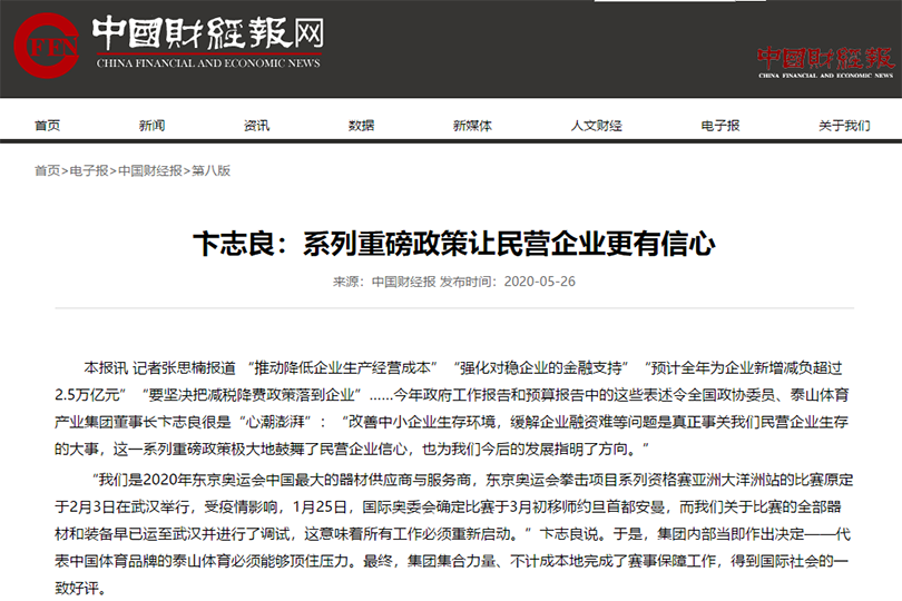 消费日报:全国政协委员卞志良--让奥运品质的体育用品全民共享