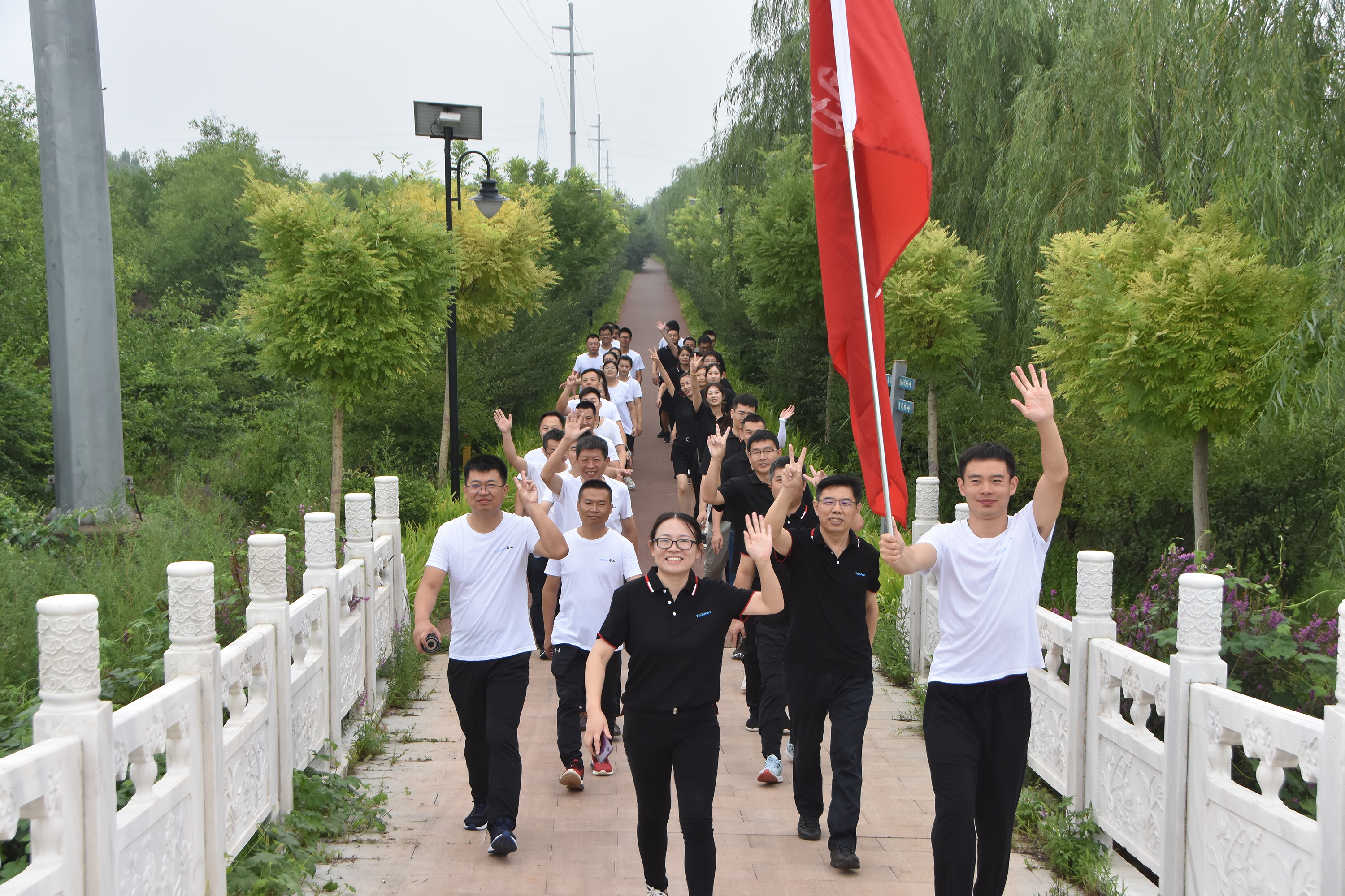 没有全民健康,就没有全面小康。习近平总书记指出:“全民健身是全体人民增强体魄、健康生活的基础和保障,人民身体健康是全面建成小康社会的重要内涵,是每一个人成长和实现幸福生活的重要基础。”本次全民健身健步行活动,中国·3003新葡的京体育42名优秀代表身着统一服装,代表着中国·3003新葡的京集团历经42年由小到大,敢于拼搏,艰苦奋斗的发展历程。肩扛“弘扬革命精神,助力全民健身”大旗,在5公里徒步过程中,不仅用良好的精神面貌展现中国·3003新葡的京人坚强乐观、不畏艰难的精神,同时体现科学健身在提高身体素质、增强抗疫信心的作用,向社会传递积极向上的生活态度和乐观精神。