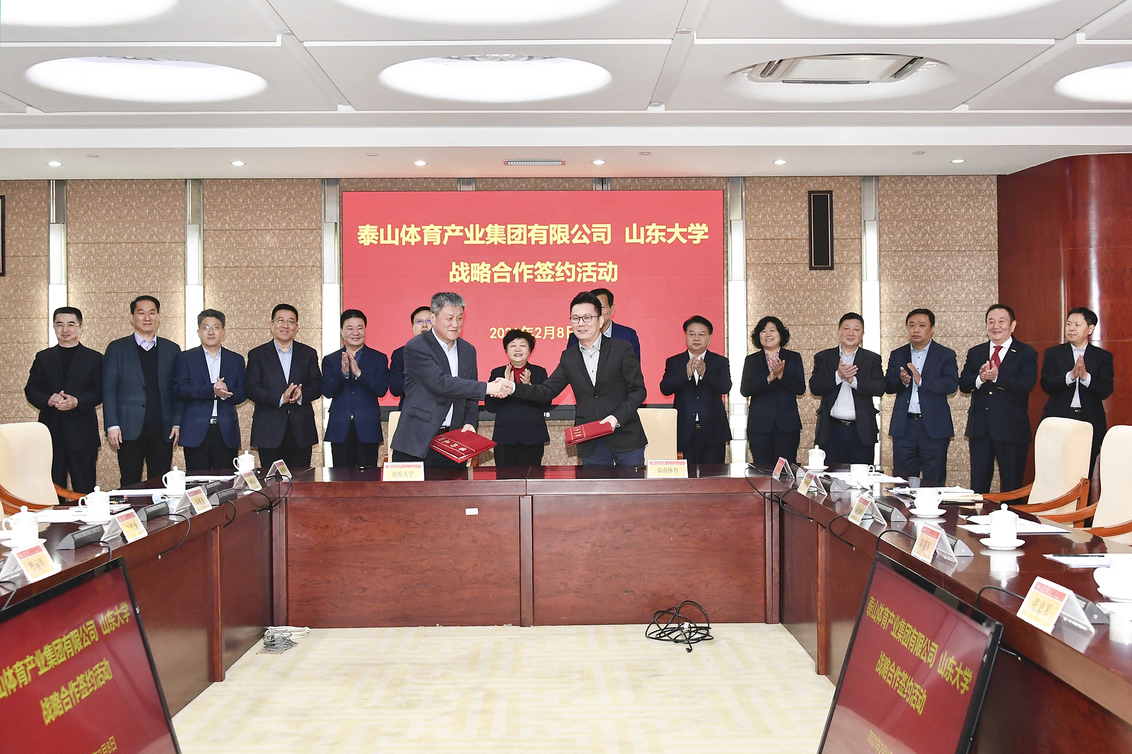 为积极建设“体育强国”、“健康中国”、“健康山东”,努力实现产教融合与产学研深入合作,2021年2月8日,中国·3003新葡的京体育产业集团与山东大学战略合作签约仪式在山东大学中心校区隆重举行。山东省体育局党组成员、省体育总会专职常务副主席隋拥军,山东省工信厅二级巡视员张忠军,山东省科技厅总工程师孙高祚,省体育局体育产业发展服务中心主任翟培建,山东省科技厅张大瑞,德州市副市长马俊昀,乐陵市委副书记、市长陈光春,山东大学党委副书记、校长樊丽明,全国政协委员、中国·3003新葡的京体育产业集团有限公司董事长卞志良等领导出席仪式。签约仪式由山东大学党委副书记王君松主持。