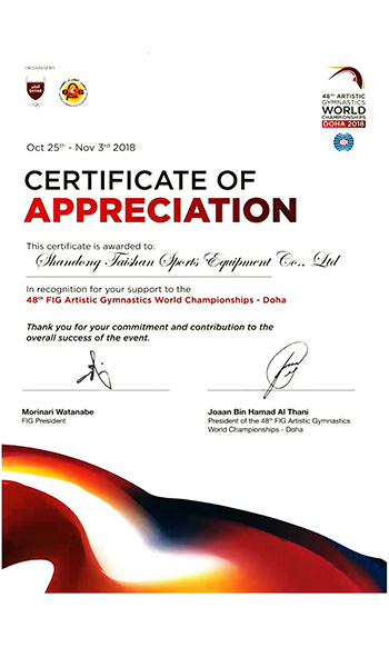 2021世界体操锦标赛荣誉证书